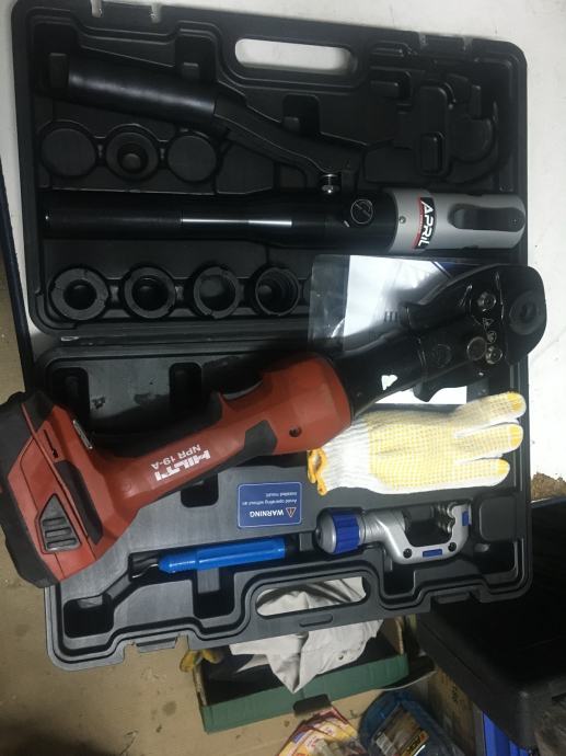 Hidroulična presa sa čeljusti koja odgovara i za aku hilti presu NPR 19 te izmjenjivi TH ulošci 16,20,25,26,32 plus škare za plastiku i za bakar cijena tog seta u koferu 250€
