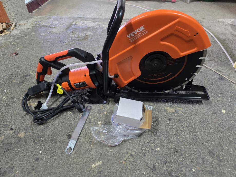 Prodajem električnu ručnu pilu za rezanje betona, kamena, opeke, itd. Uz pilu dolazi i pumpa za vodu(može rezati mokro i suho) te dijamnatni list pile. Dimenzija lista pile je 400mm, prihvat lista pile je 25,4 mm. Dubina reza pod 90° je oko 150mm. Snaga elektro motora je 2800W.
