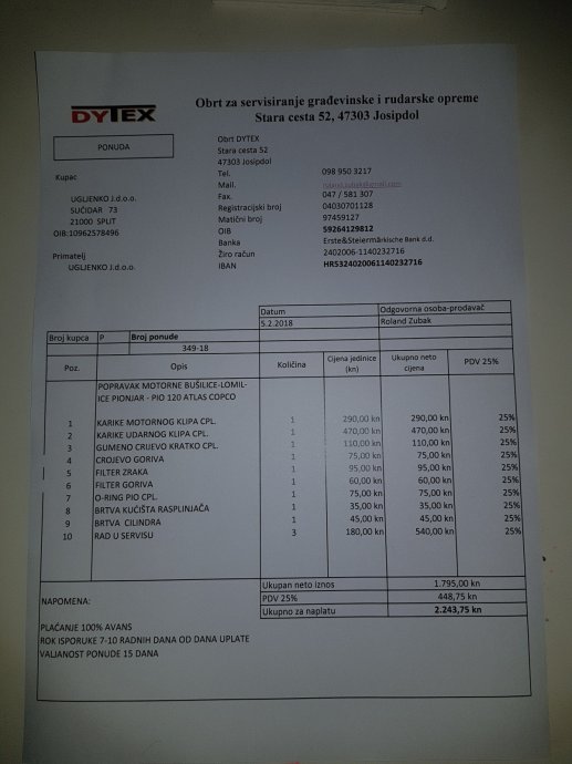 Napravljen je veliki polugeneralni servis na njemu. Servisiran je u ovlaštenome servisu Atlas Copca - "DYTEX" u Josipdolu (Ogulin).