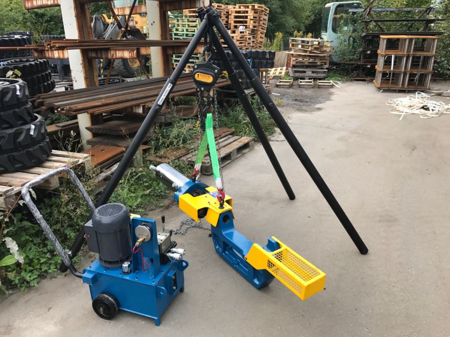 Izvlakač bolcni iz lanca gusjenica na teškim strojevima