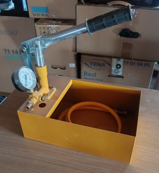 Prodajem pumpu za tlačnu probu, profesionalni alat za građevinske radove. Pumpa dolazi s pripadajućim crijevom i manometrom za precizno mjerenje tlaka. Idealna za vodoinstalatera ili majstore koji rade na sustavima pod tlakom.