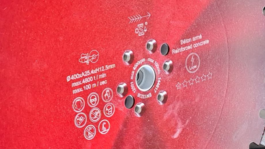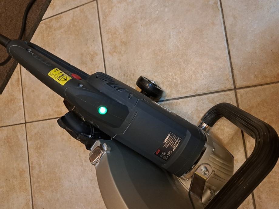 Stroj ima led svjetlo koje indicira zeleno kad je sve ok, ako ju opteretite upali se crveno svjetlo (navodno se pali malo prije opterećenja) i to svjetlo je lijepo vidljivo u radu. Izmjena zeleno-crveno je brza (u sekundama) i puno pomaže. Također Ima zaštitu od pregrijavanja i poklopce četkica brzo skidive, ali te funkcije mi nisu trebale (četkice su naravno original i zanemarivo su potrošene). Ima priključak za usisavač ako ćete piliti bez vode, što je moguće sa ovom pločom, no piljenje na vodu je bolje kad god radni uvjeti dopuste. Snaga pile je 3200W (i to je odlično jer snage ima dovoljno ) i dubina reza 150mm. Papire sve imam i imate garanciju do 9mj/2025.