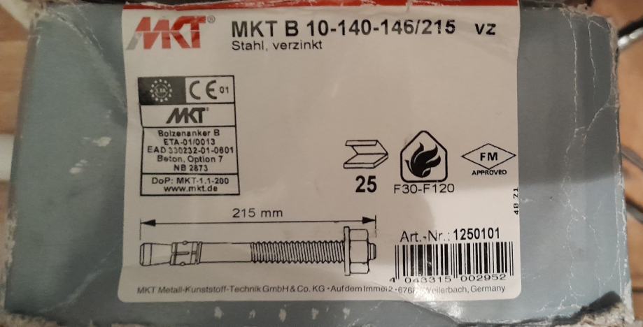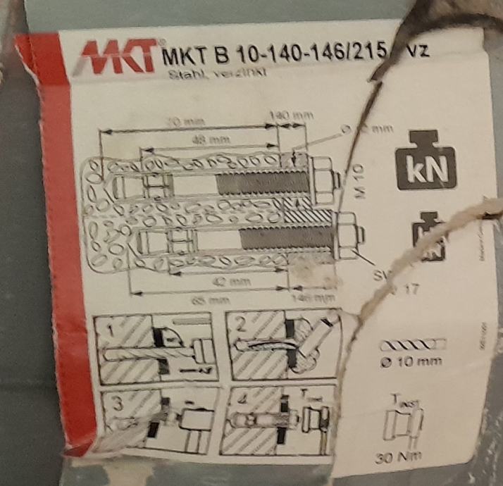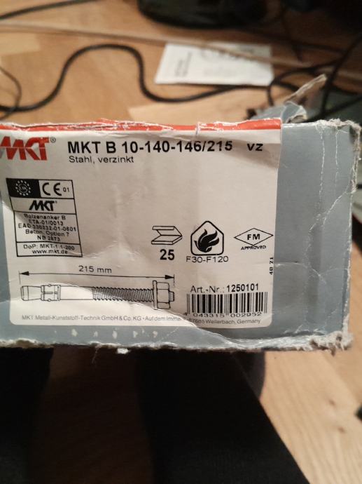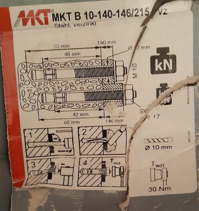 Ukupna dužina 215 mm, debljina vijka M10, matica M17. Original u kutiji 25 kom, u prodaji 21 kom, potpuno novo. Za spajanje velikih i teških konstrukcija, Alu terasa, i sl.