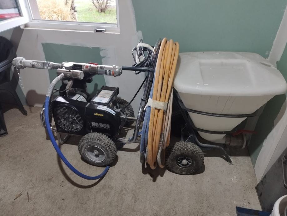 Uz navedeni stroj ide i silos,2 pištolja za gletanje od kojih je jedan nov (placen 650€) i jedan pištolj za bojanje.