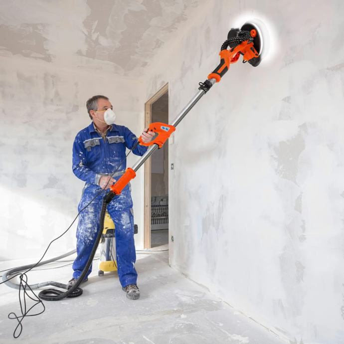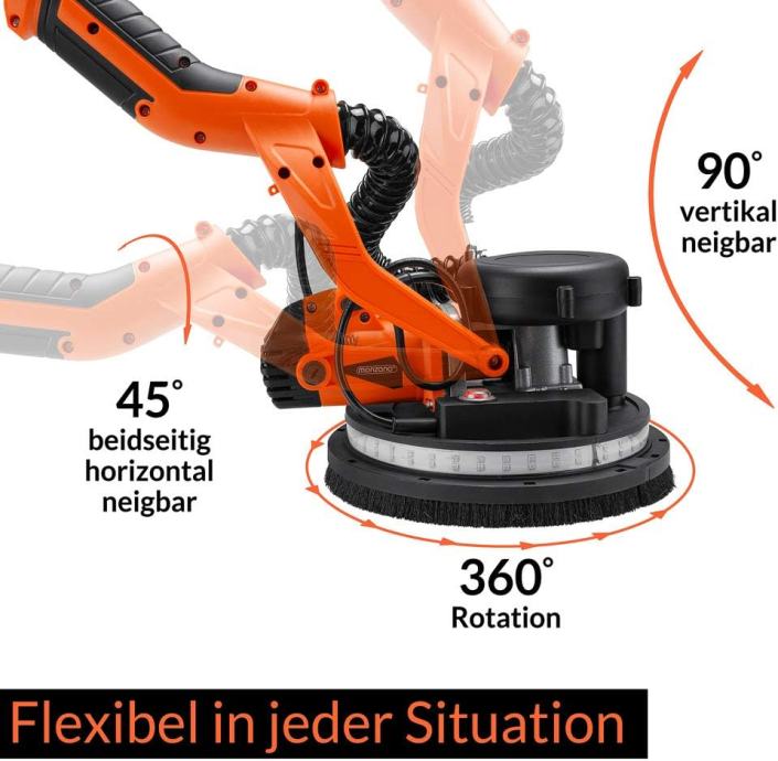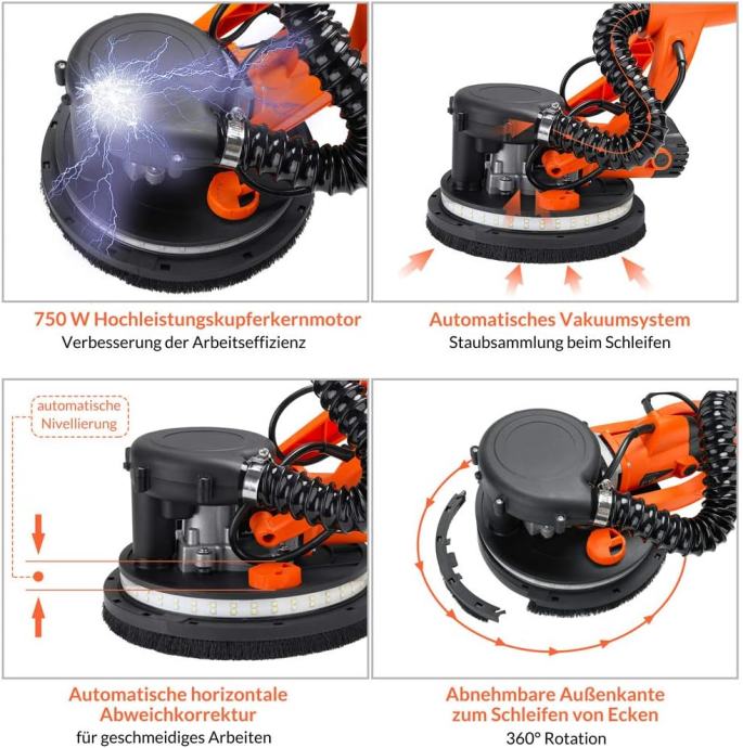 Drywall Sander 750 Watt Max Speed 1750 rpm 12 x Diameter 225 mm Sanding Discs Including Suction Bag LED Light Ceiling Sander Sander