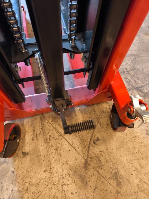 Staker je opremljen PU (poliuretanskim) kotačima koji osiguravaju tih i gladak hod, ali i otpornost na habanje prilikom vožnje po tvrdim industrijskim površinama. Zahvaljujući mehaničkoj kočnici, korisnik ima potpunu kontrolu nad zaustavljanjem i stabilizacijom uređaja tijekom podizanja ili spuštanja tereta, što doprinosi sigurnosti u radu.