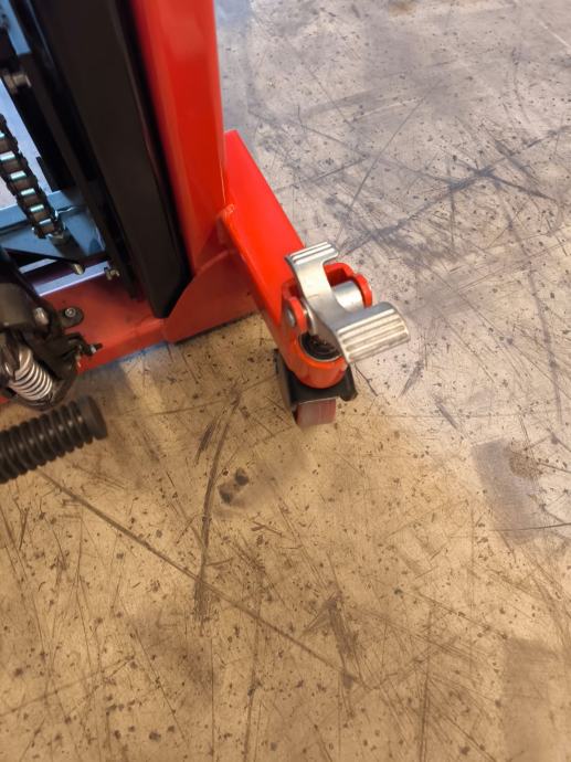 Staker je opremljen PU (poliuretanskim) kotačima koji osiguravaju tih i gladak hod, ali i otpornost na habanje prilikom vožnje po tvrdim industrijskim površinama. Zahvaljujući mehaničkoj kočnici, korisnik ima potpunu kontrolu nad zaustavljanjem i stabilizacijom uređaja tijekom podizanja ili spuštanja tereta, što doprinosi sigurnosti u radu.