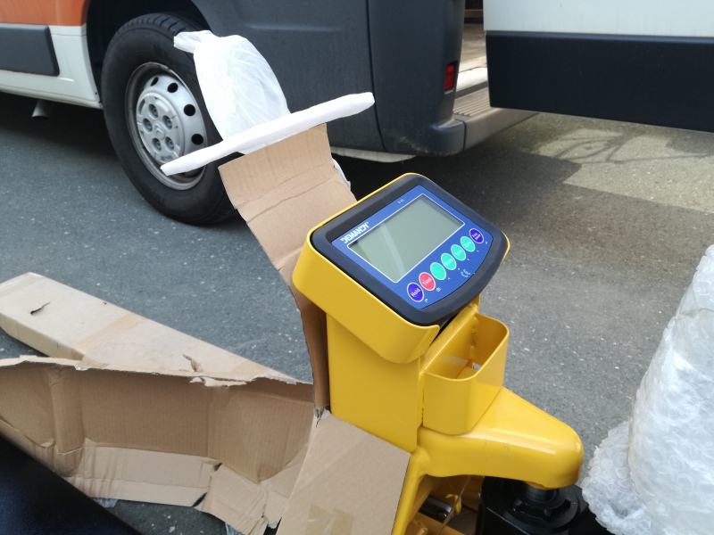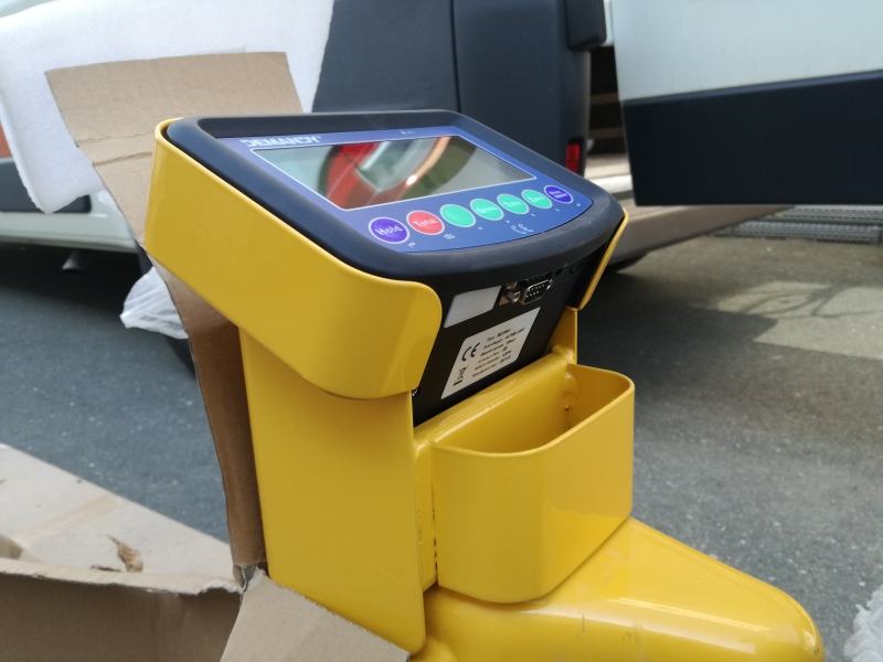 Paletni viličar s vagom od 2000 kg. Vaganje tereta moguće je i tijekom kretanja. Paletni viličar opremljen je pisačem. Podjela od 500 g.