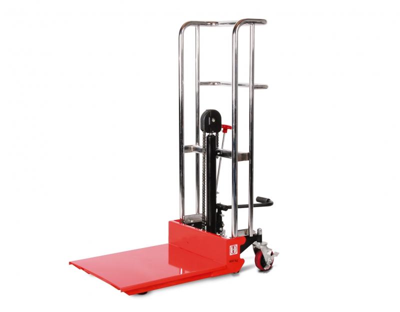Xlift® transportni viličar s visokim dizanjem može se koristiti za podizanje robe maksimalne ukupne težine 400 kg na visinu od 1200 mm pomoću sklopive hidraulične nožne pumpe. Brzinu spuštanja možete sami regulirati pomoću hidrauličkog ventila. Kartonske kutije i druga roba mogu se lako podizati, prevoziti i slagati na odvojivoj platformi ovog paletnog viličara. Ako vam je potreban paletni viličar, jednostavno odvojite platformu i pomaknite kratke palete vilicama. Vilice paletnog viličara mogu se spustiti na otprilike 85 mm. Šasija ovog prijenosnog paletnog viličara s visokim dizanjem posebno je robusna i ima dva okretna i fiksna kotača. Blokada kotača paletnog viličara osigurava veću stabilnost.