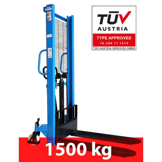 Viličar nosivosti 1500 kg sa visinom dizanja 1600mm i verzija sa 3000mm.Pogodan za sladište sa regalima ,prakičan,učinkovit i po iznimno niskoj cijeni. TÜV certifikat