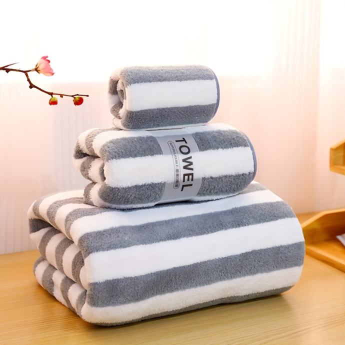 3 komada luksuznog seta ručnika za kupanje - Izdržljiva debela mikrovlakna prikladna za odrasle, Kupaonske maramice - Ultra mekane, visoko upijajuće, Moderne prugaste spa ručnike za plivanje, kupanje - Vrijednost kupnje