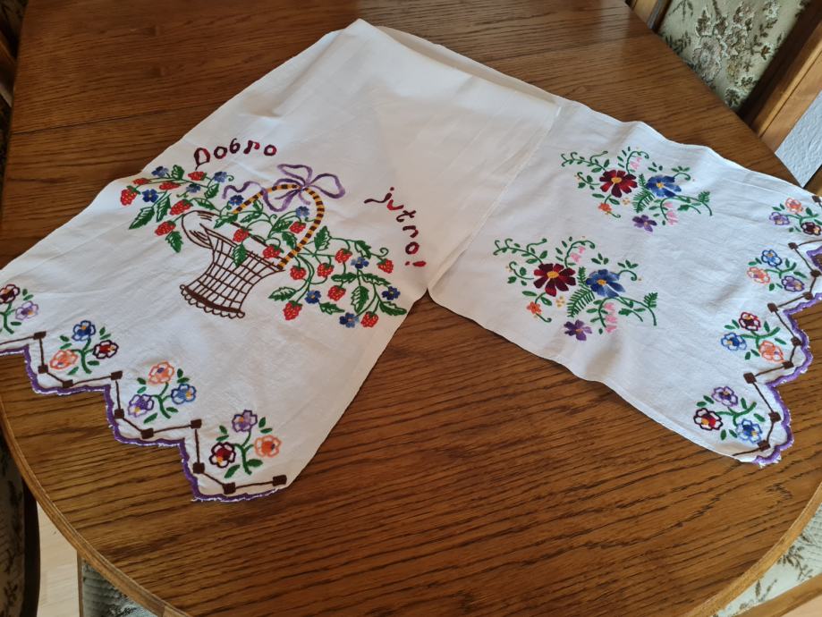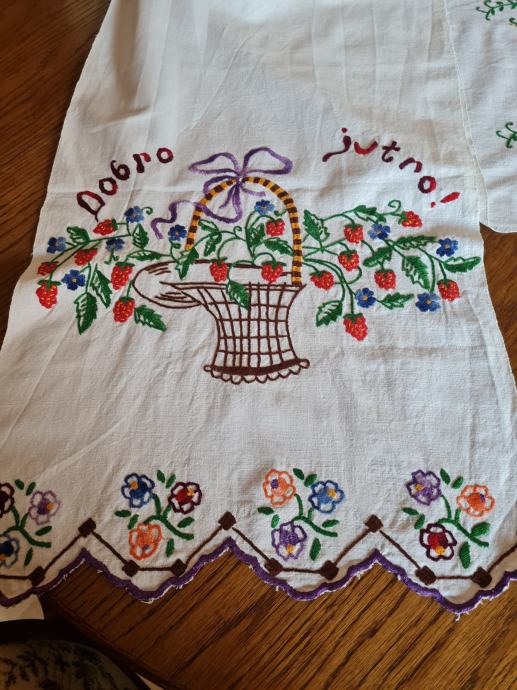 Ručnik - dobro jutro, prekrasan rad na domaćem platnu, stanje savršeno dužina ručnika 145 cm , šaljem po dogovoru na teret kupca, prvi kontakt isključivo na poziv , moguće pisati i ovdje na njuškalo