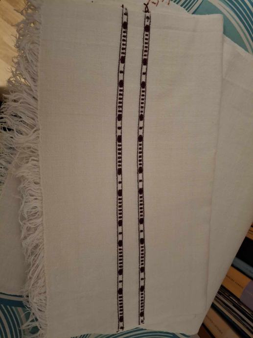 Prodajem dva ručnika od domaćeg platna ,svaki je dimenzija 38 cm širina i 168 cm dužina.