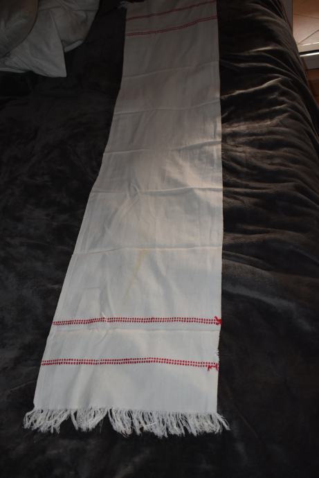 Ručnik od domačeg platna velićine 150x34 cmstanje 10/10 starost preko 100 god
