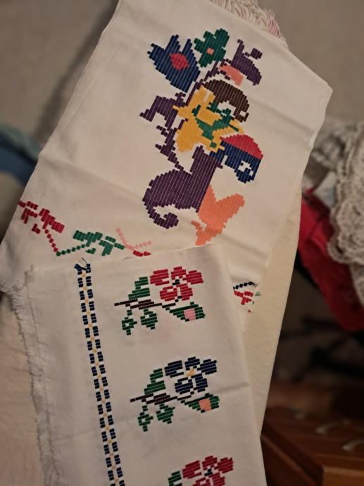 dva svatovska ručnika, runi rad na - prebiranje na tkalačkom stanu