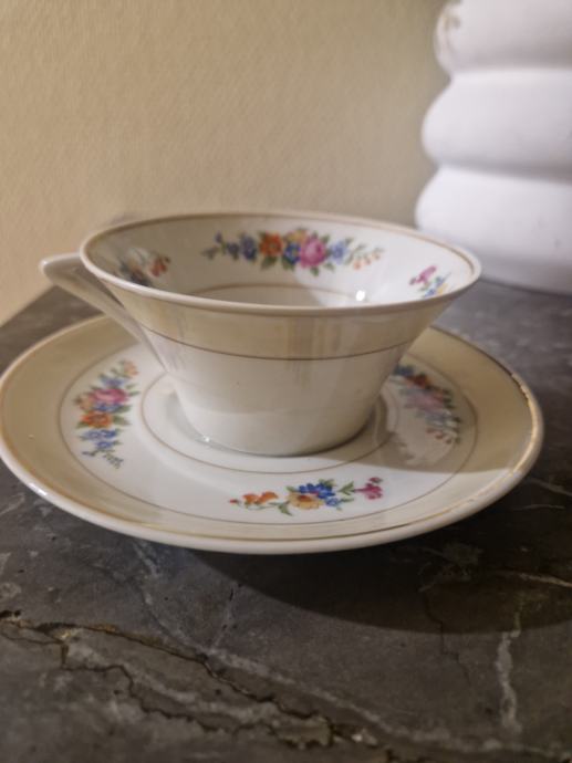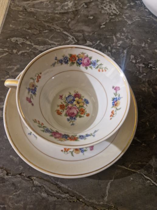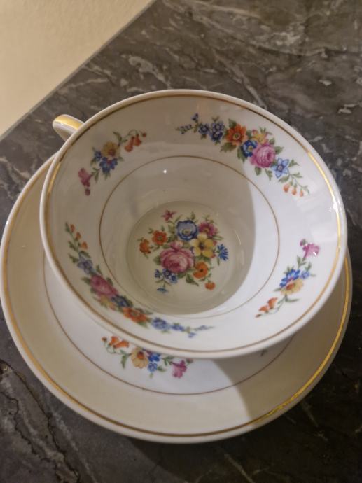 Odlično stanje, ništa okrhnuto, stari decentni rad , ručno oslikan, promjer tanjurića je oko 14 cm , šalica ima otvor oko 10 cm a visinu oko 5 cm....cijena fiksna...poruke na whatsapp