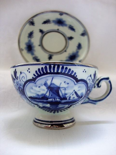 Ručno oslikana i optočena pravim srebrom rubovi i sredina te tanjur šalice rijerko u verziji sa srebrom