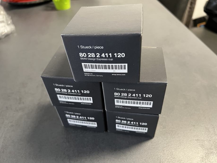 Prodajem kvalitetne espresso šalice proizvođača BMW. Znaci šalice su orginal sa BMW logom, nove i zapakirane. Šifra artikla je 80282411120 pa pod tim brojem na internetu možete pronaći vise detalja o proizvodu. Upiti u inbox ili na broj telefona 098 519309. Cijena komada je 7€.