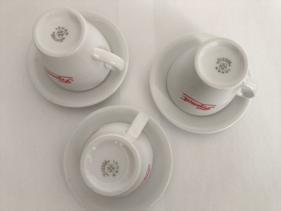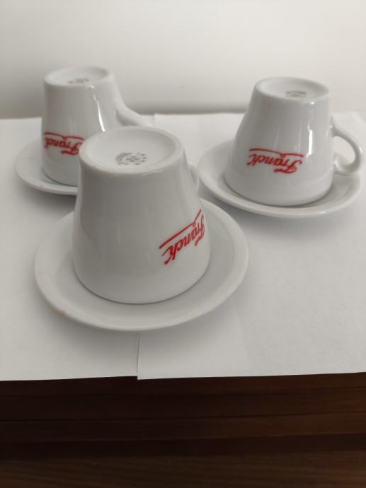 Porculanska šalica za kavu s natpisom Franck. Inker Zaprešić. Cijena je za jednu šalicu s tanjurićem.