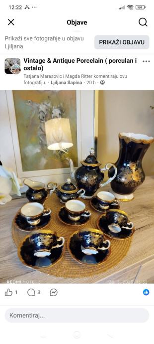 Kobalt servis za kavu od 6 šalica sa pripadajućom tanjurićima, vrč za kavu, doza za šećer i doza za mlijeko.