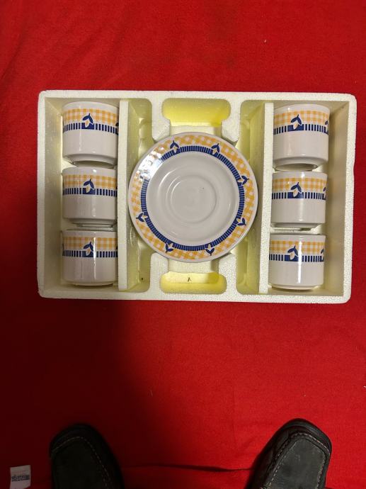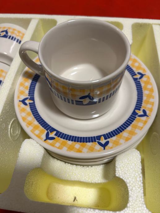 Novi servis za caj ili bijelu kavu ,6 kom salice i tanjurici u kutiji ne koristeno. Iz sedamdesetih godina
