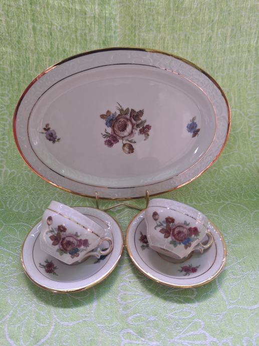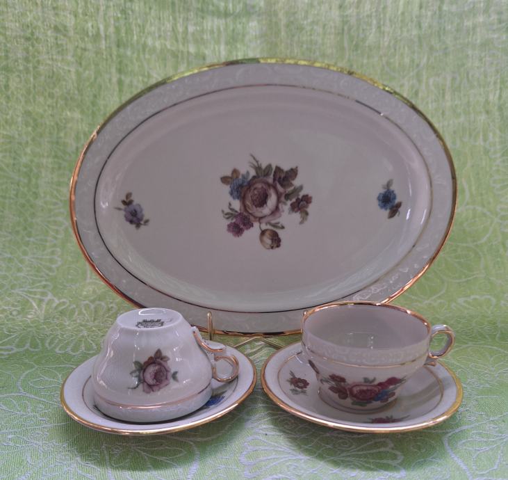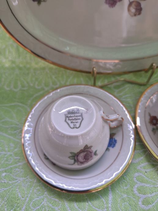 Ovo je Kjøbenhavns Porcellains Painting) set porculanskih šalica za kavu ili čaj s tanjurićima i ovalnim pladnjem.