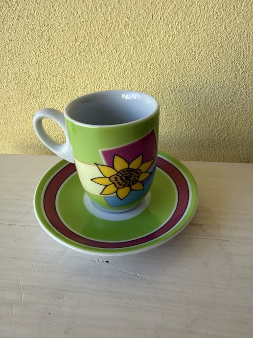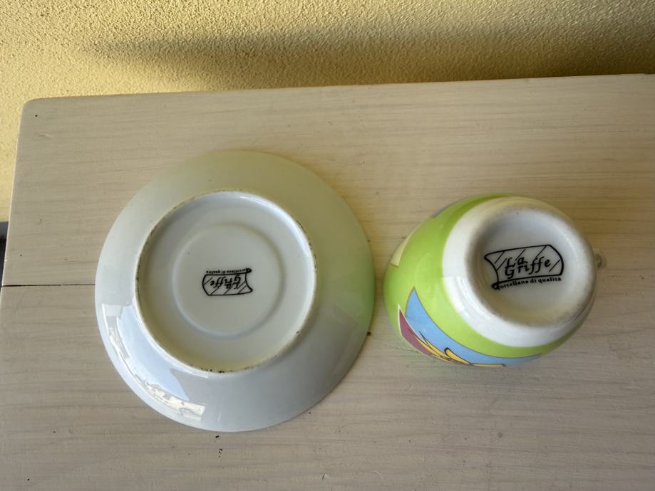 Prodajem atraktivnu espresso šalicu s pripadajućim tanjurićem talijanskog brenda La Griffe. Šalica je izrađena od visokokvalitetnog porculana (porcellana di qualità), prepoznatljivog po veselom i modernom dizajnu s motivom suncokreta.Kolekcionarski primjerak: Idealno za ljubitelje espressa koji cijene talijanski dizajn ili kao poseban poklon.