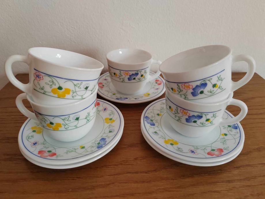 Šalice srednje veličine za kavu s mlijekom. Jedna ima oštećenje na ručkici, ali može se koristiti (zadnja slika). Cijena je za svih 5 šalica.