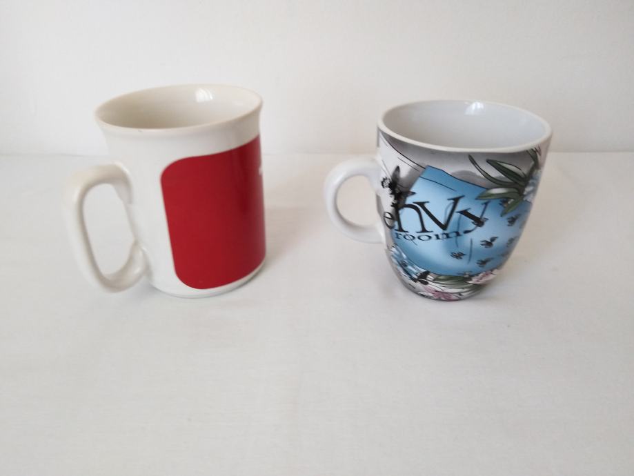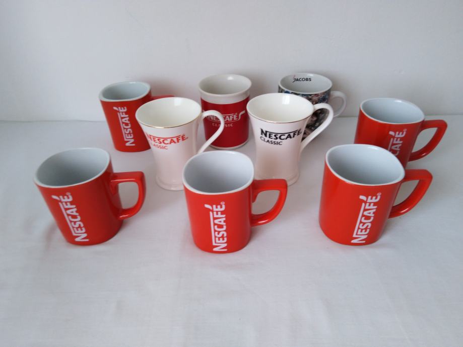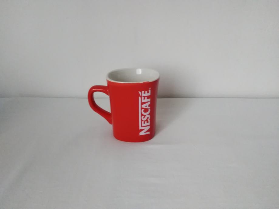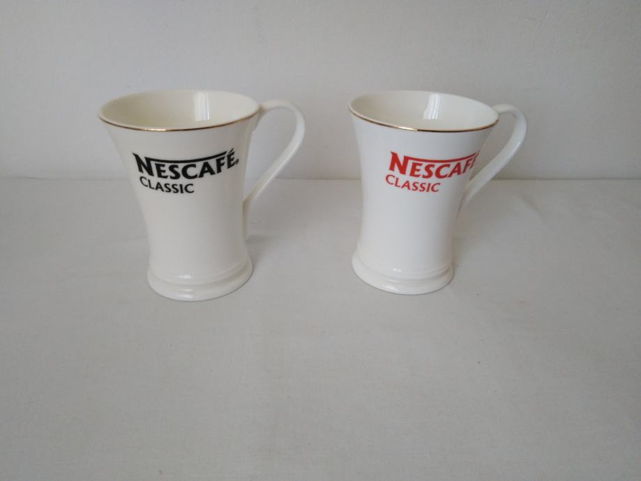 Bijela šalica sa zlatnim rubom - crni i crveni natpis