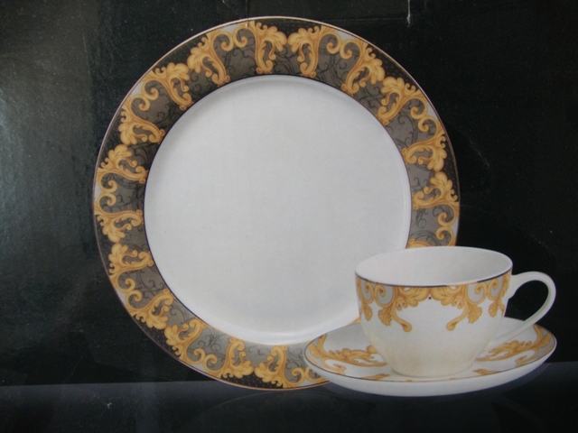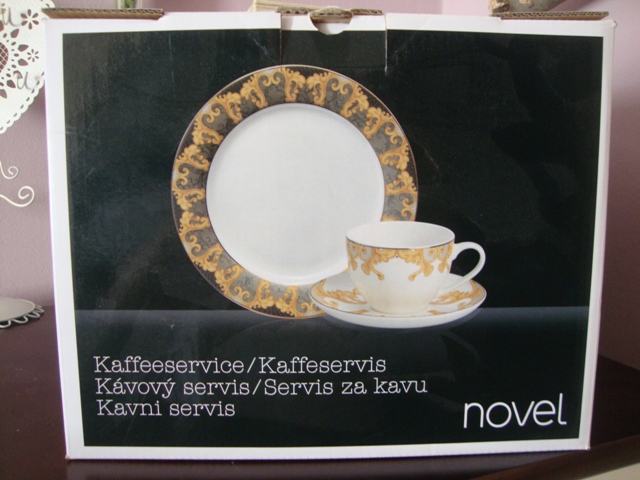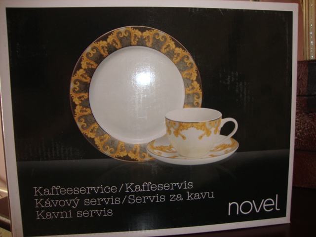 Novi, neraspakiran 18-odijelni komplet za kavu. Porculan/boje zla/siva, romantičnog dizajna, pogodan za 6 osoba. Sastoji se od 6 desertnih tanjura promjera 20 cm, 6 šalica za kavu po 220 ml, i 6 tanjurića za šalice promjera 15,8 cm
