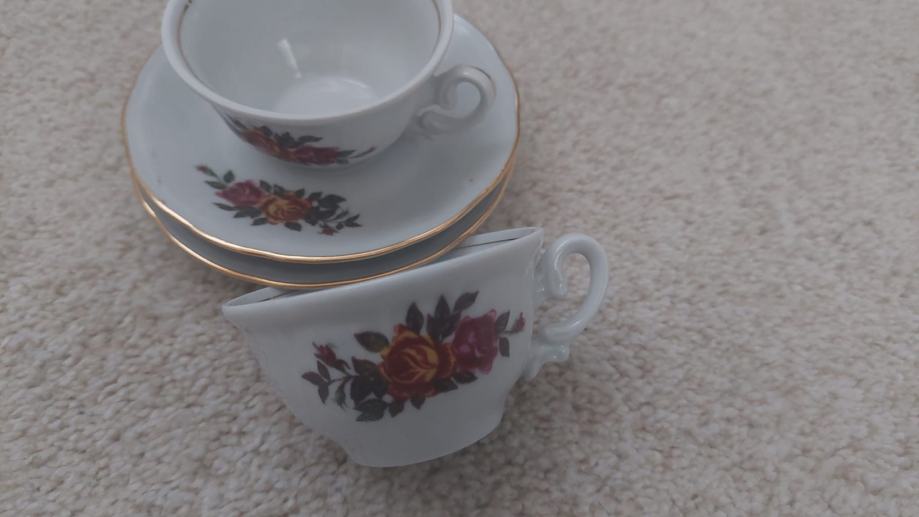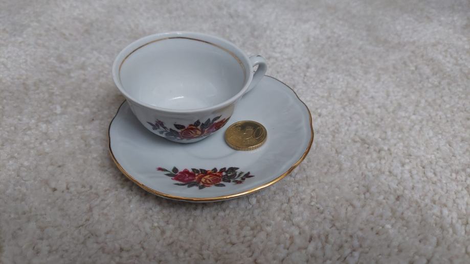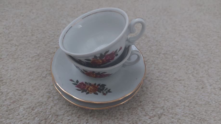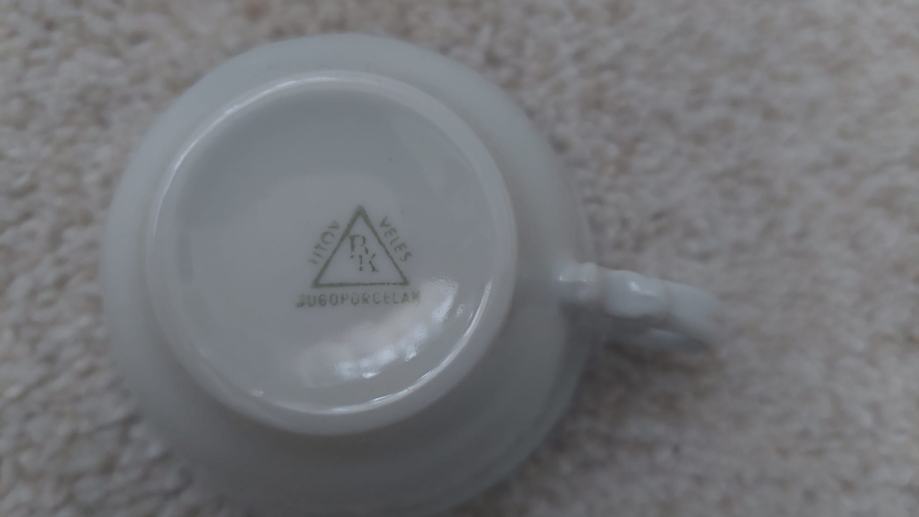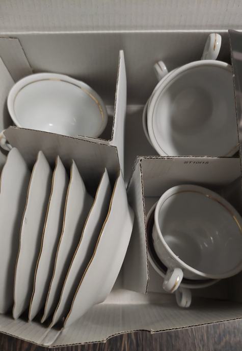 Nekorišteni set od 6 porculanskih šalica i tanjurića za tursku kavu. Jugoporcelan.