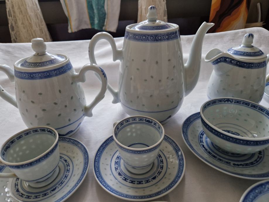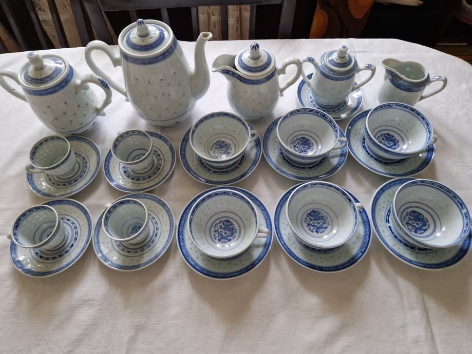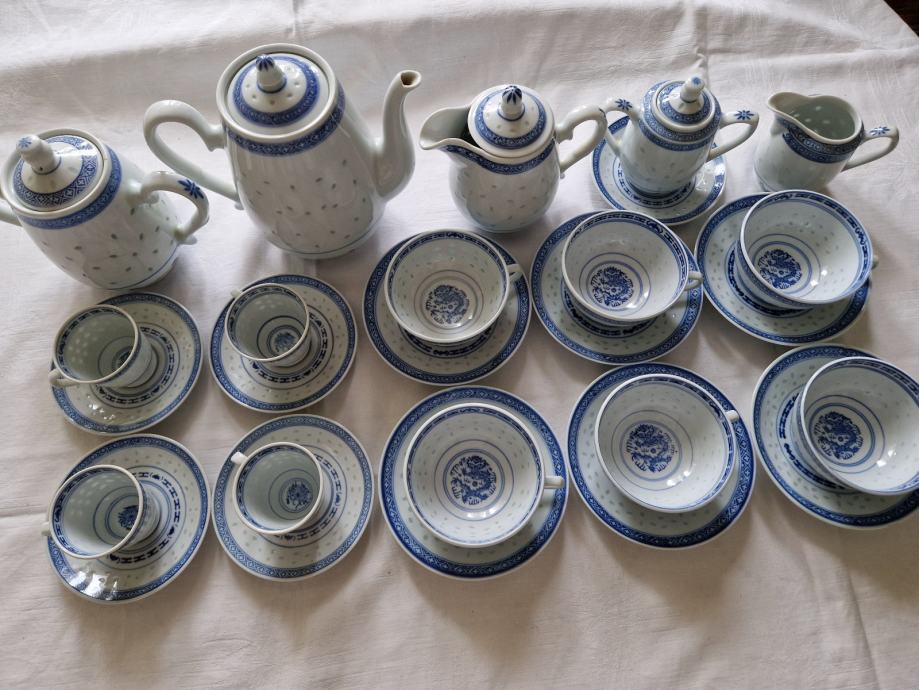 Kineski porculan, star preko 40 godina, očuvan, nedostaju 2 šalice za kavu, ostalo kao novo.