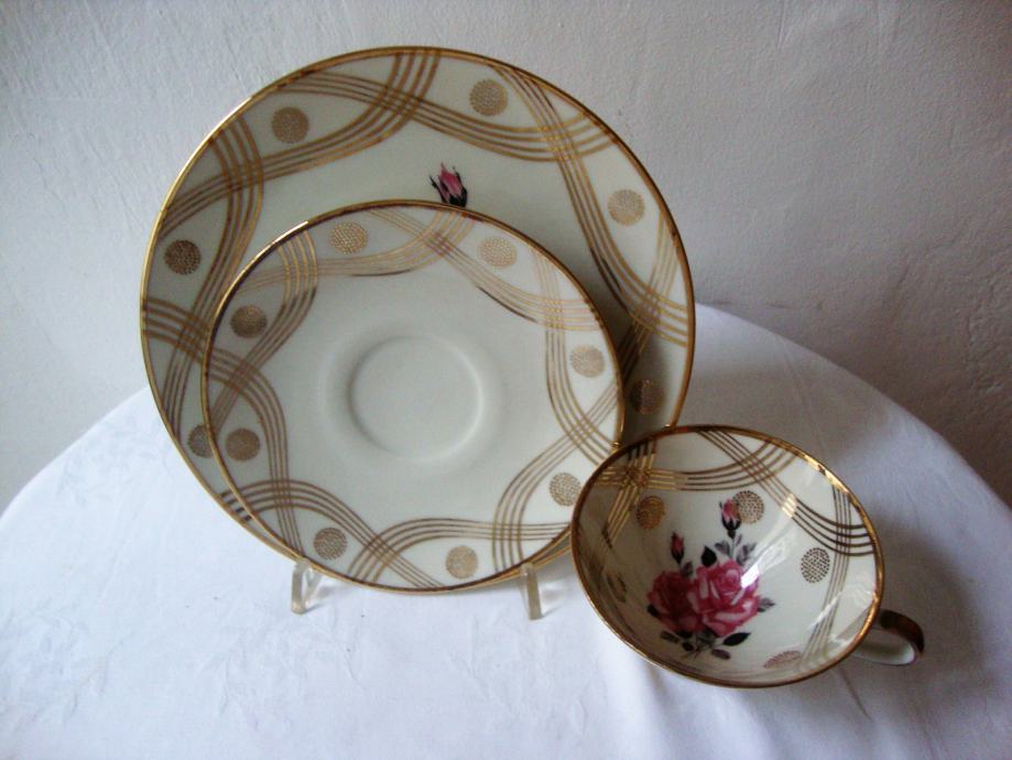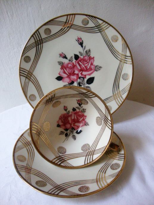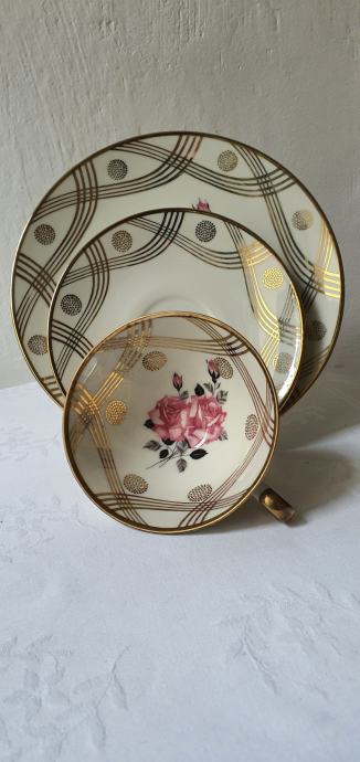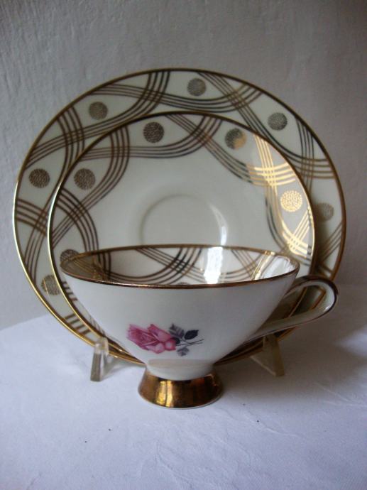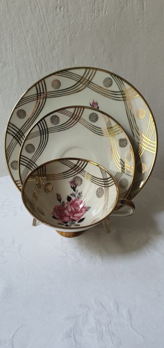 Veliki desertni tanjur promjera 19,8 cm , tanjur od šalice promjera 14,8 cm , šalica raspon 12,3 cm sa drškom , promjer bez ručke 10,3 cm , visina 6,3 cm