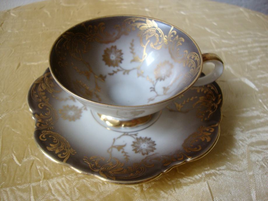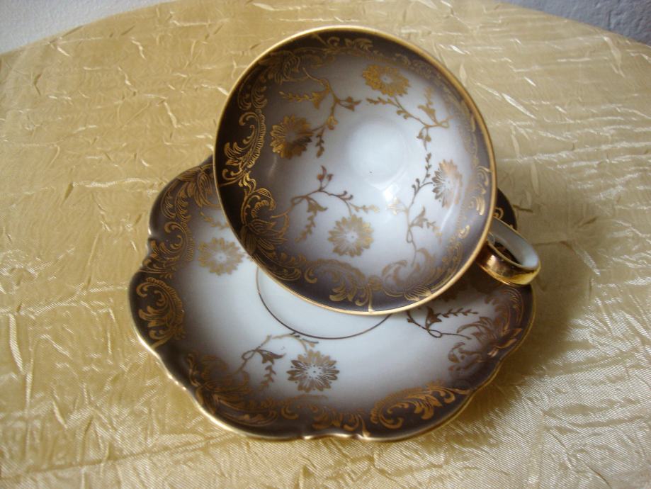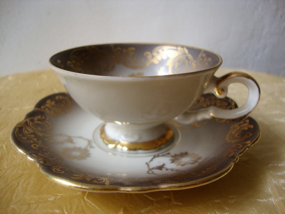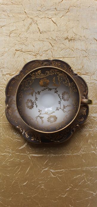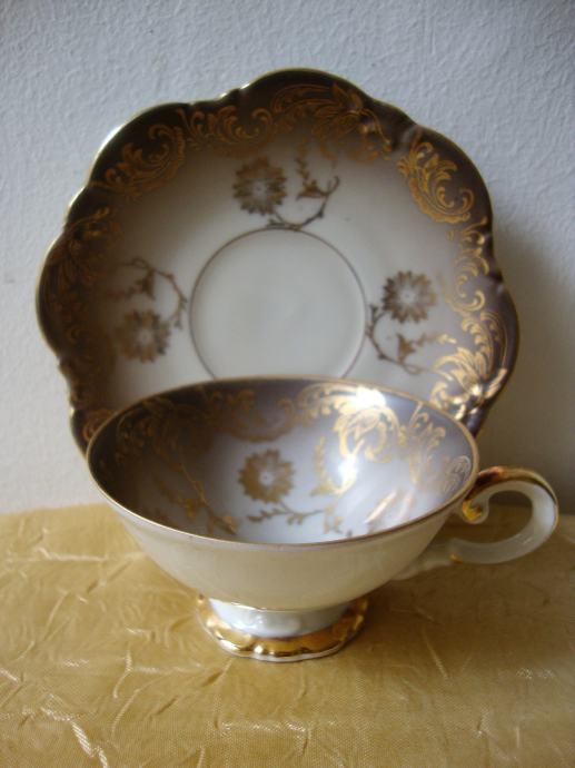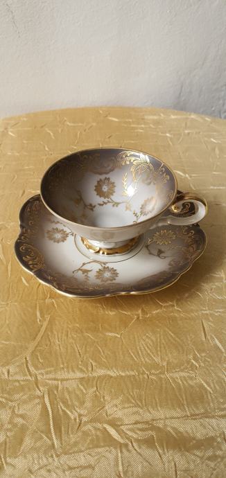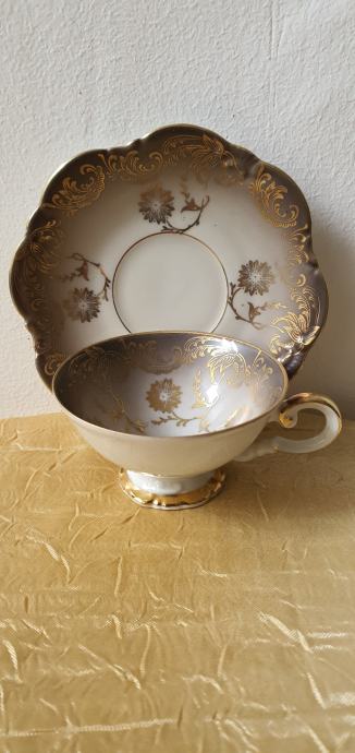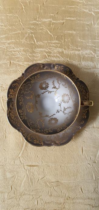 Predivna stara zlatna šalica ručno oslikana pozlatom cvjetni uzorak