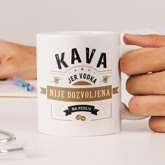 ŠALICA KERAMIČKA S TISKOM BIJELA 300 ml - Kava jer vodka nije dozvolje
