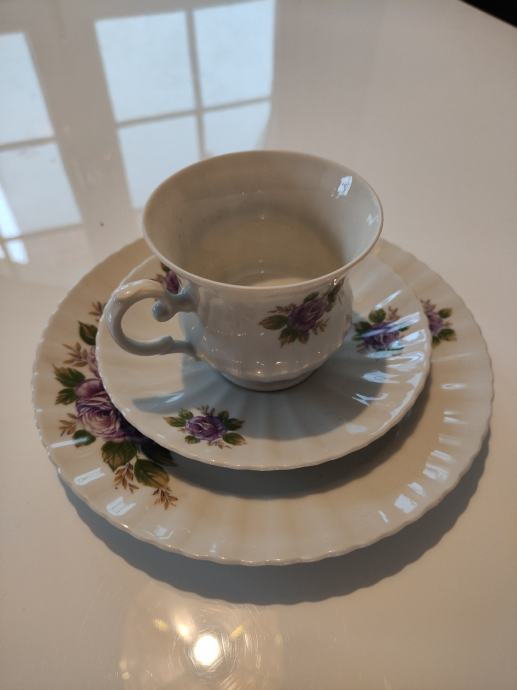 Prodajem šalicu s tanjurićem i desertnim tanjurićem.