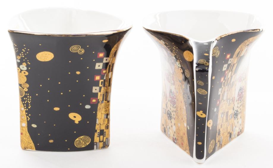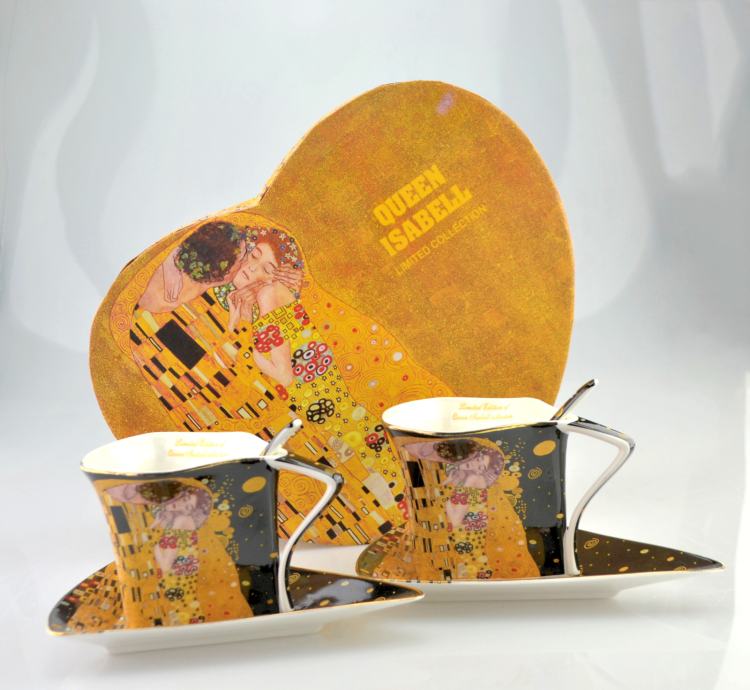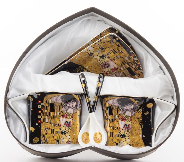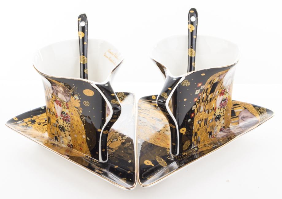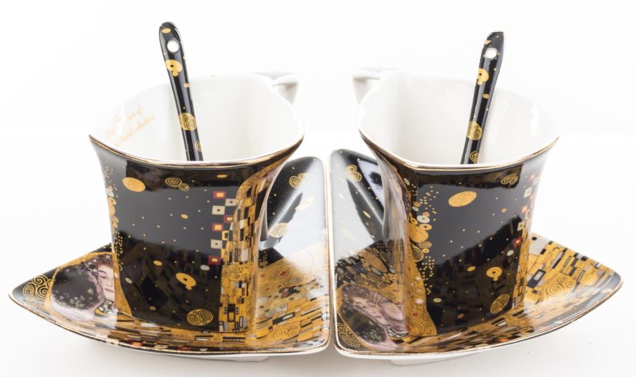 Komplet šalica za kavu, 2 x 200ml, motiv Gustav Klimt - Poljubac, crna podloga.
