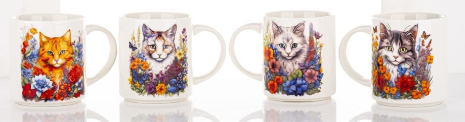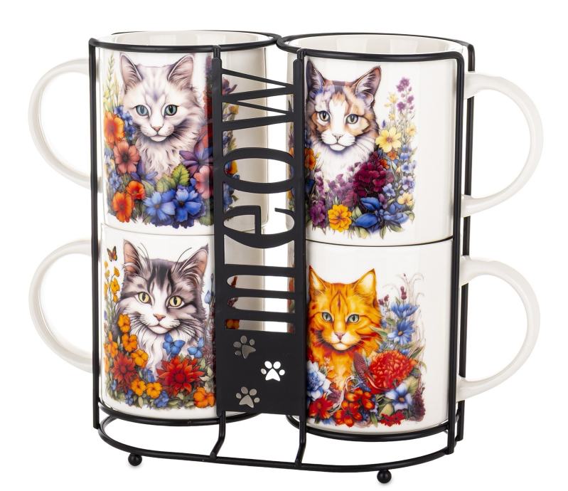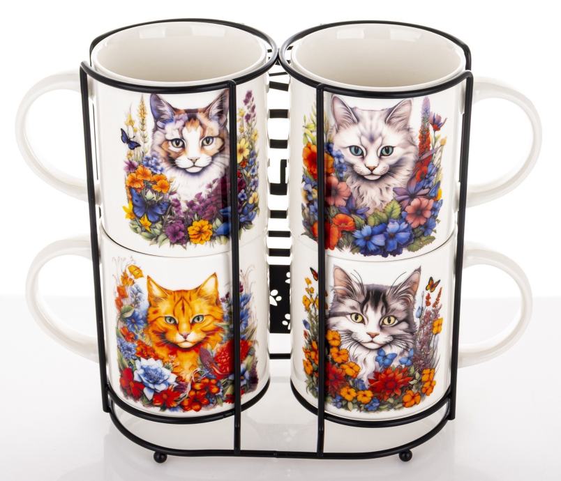 Četiri predivne šalice u nosaču za šalice.