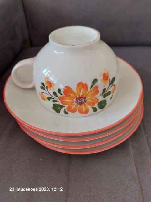 Četiri vesele šalice sa tanjurićima, u odličnom stanju.