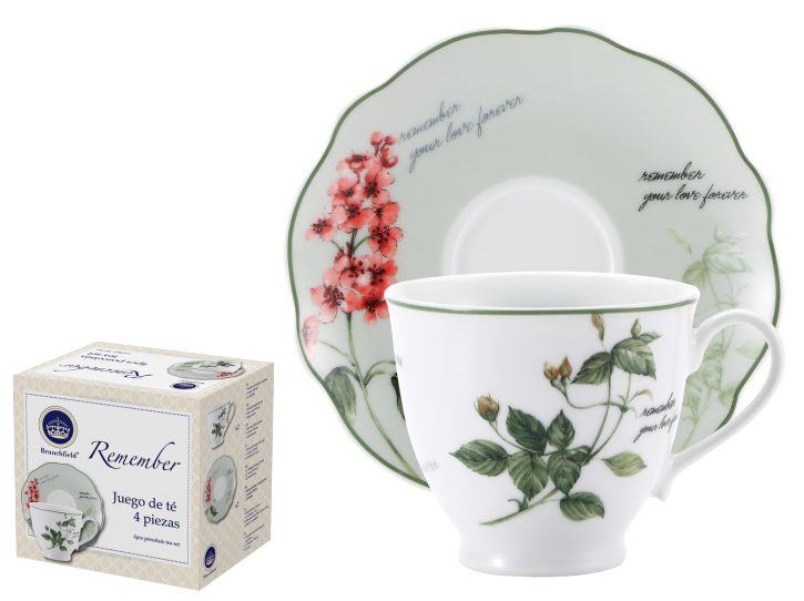 Set od dvije šalice za kavu sa pripadajućim tanjurićima. Šalice i tanjurići ukrašeni su cvjetnim motivima.