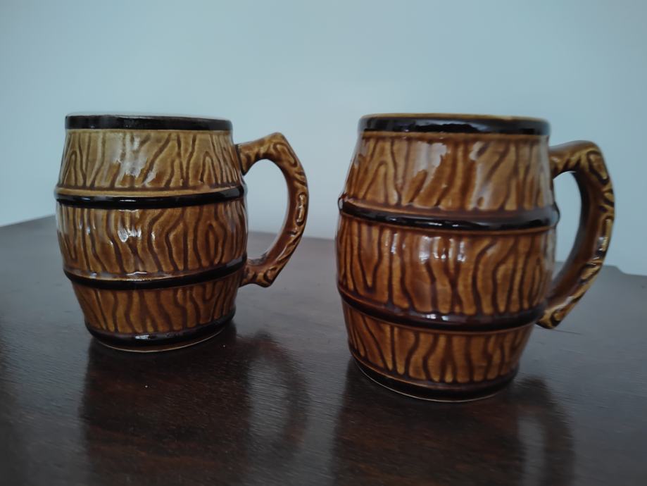 Povoljno prodajem dvije keramičke šalice u obliku bačvica visine 10 cm.