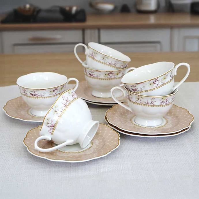 ŠALICE S TANJURIĆIMA NEW BONE ELEGANZA DEKORIRANE 6/1 200 ML - VALOVIT