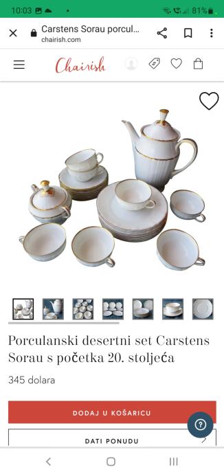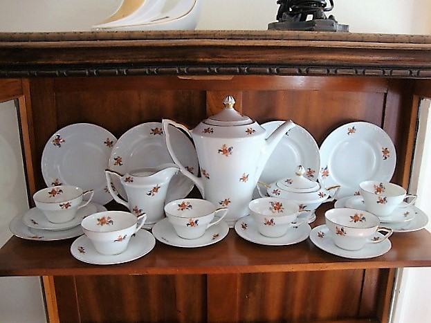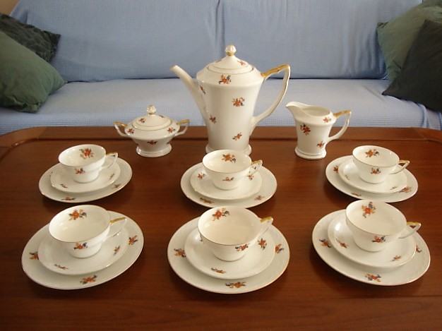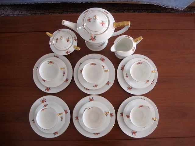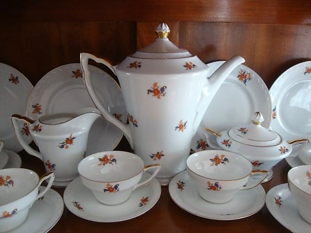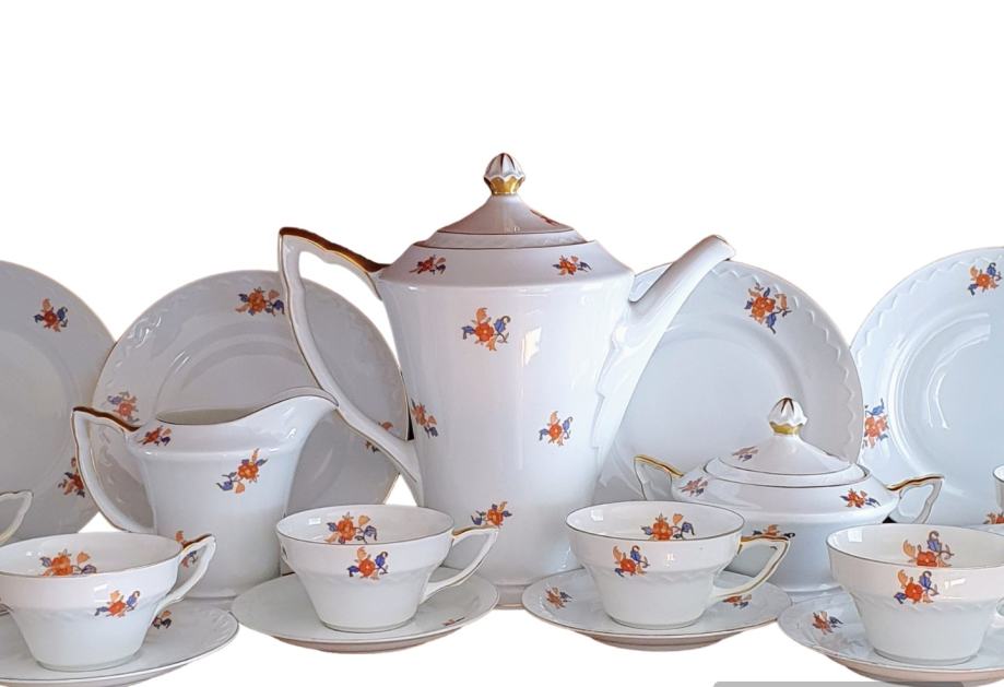 Porculanski servis za čaj i kavu sa velikim raskošnim dijelovima ručno oslikan, te rubno reljefno ukrašen i pozlaćen
