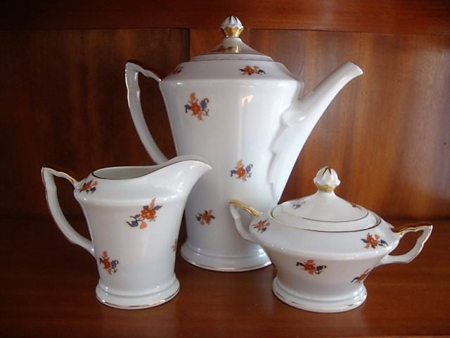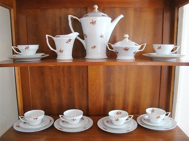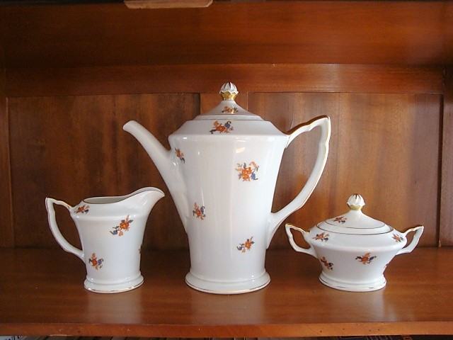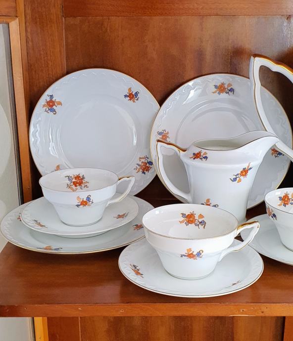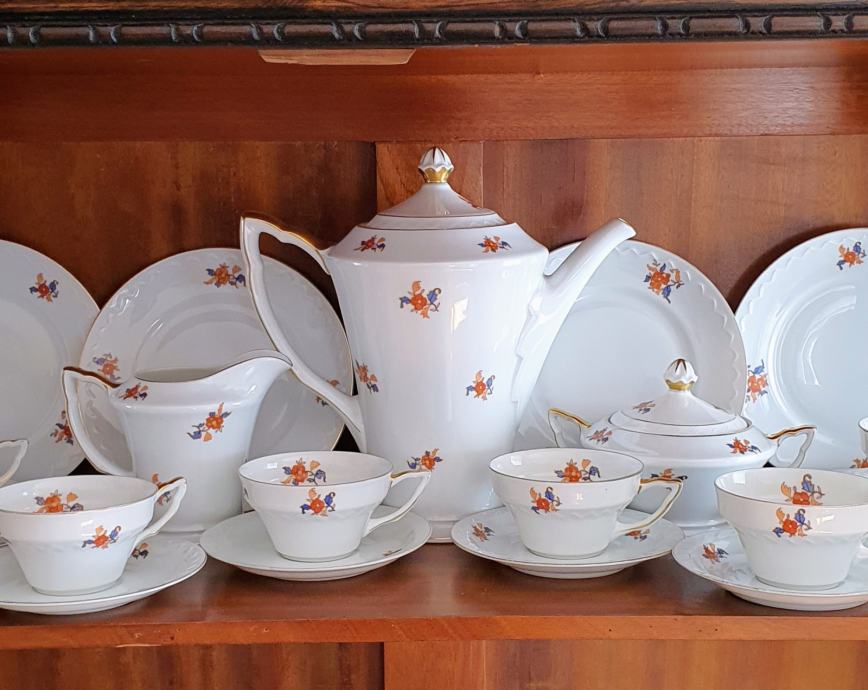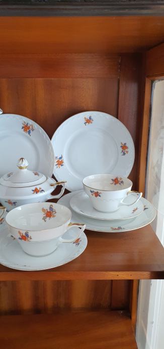 Okvirno cca 100 godina star servis izrađen oko 1919.-1930. godine vrlo elegantan sa predivnim narančasto-plavim cvijetićima,