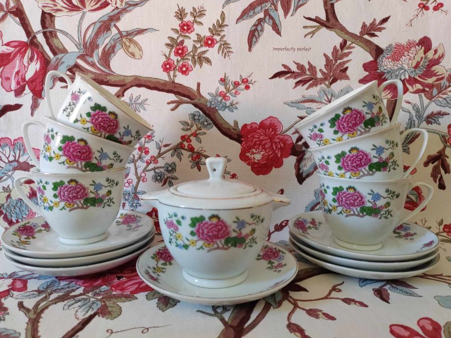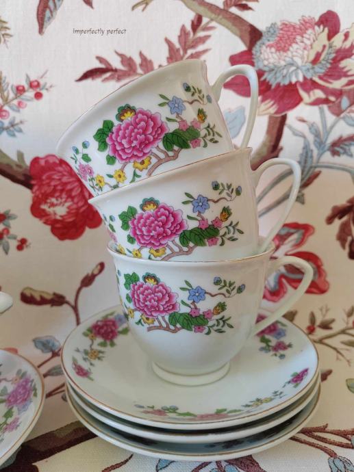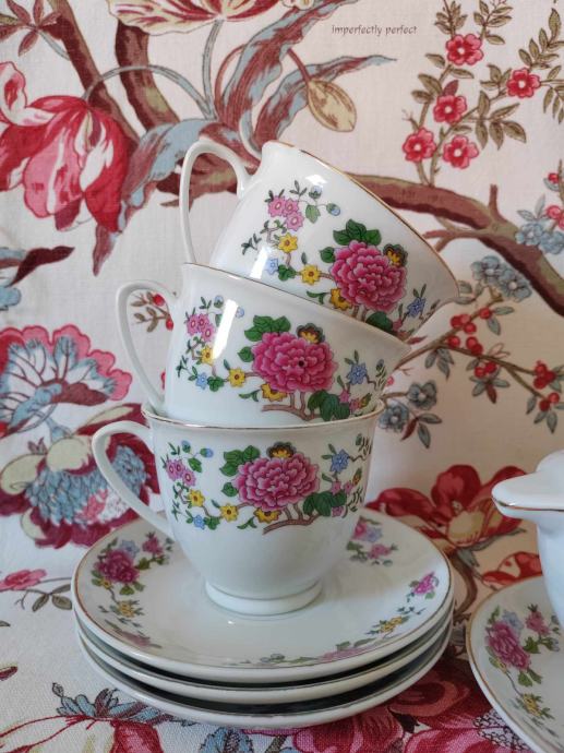 Šest velikih vintage šalica za čaj/kavu zapremnine 200 ml + šećernica