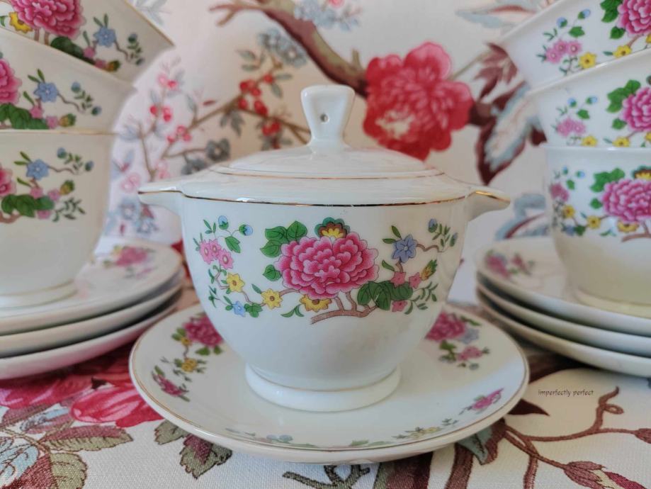 Ukrašene su živopisnim cvjetnim motivom kojim dominira božur. Izrađene su od debljeg porculana te su stoga pogodne za svakodnevnu uporabu.