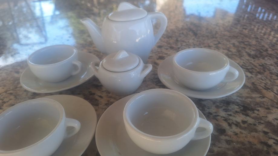 Prodajem set za kavu minijaturni za 4 osobe koji se sastoji od 4 salice sa tanjiricima dozu za secer i dozu za mlijeko sve je minijaturno i neosteceno takoreci nekoristeno