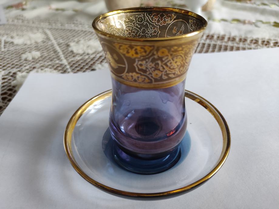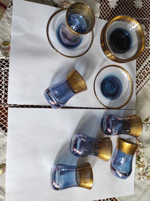 Predivan komplet staklenih čaša/šalica kupljen u Turskoj, u kojima se servira vreli čaj.