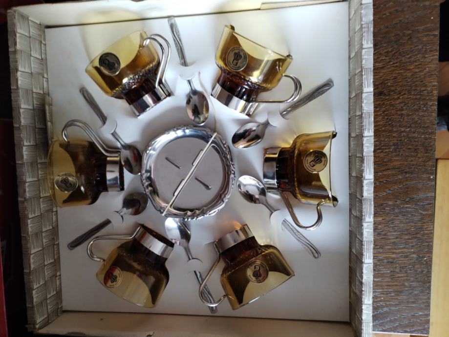 Prodajem dtari set za kavu s tanjrićima i žličicama.