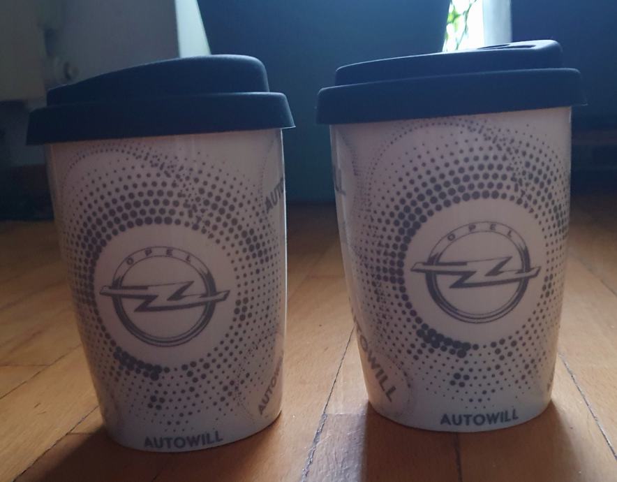 'Opel' termo šalica s dvostrulim stijenkama i gumenim poklopcem, nova, neoštećena, nekorištena.